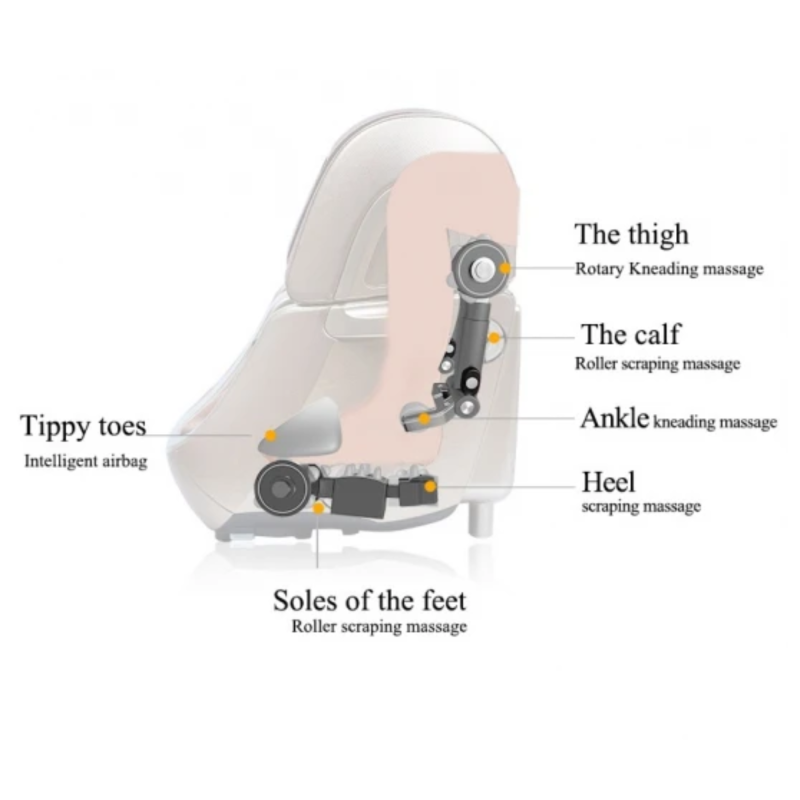 ASTARIJA GOLDY pruža cjelovitu masažu cijelih nogu – od stopala do bedara – te se prilagođava svakom korisniku uz podesivi gornji dio do 140°. Medicinski valjci, 26 zračnih jastuka i različite masažne tehnike učinkovito opuštaju mišiće, poboljšavaju cirkulaciju i limfni protok te smanjuju umor i napetost, dok intenzivno grijanje do 50 °C osigurava duboko opuštanje i još snažniji učinak masaže.